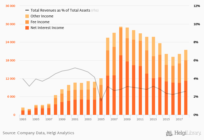 Bank's total revenues accounted for 2.59% total assets in 2018, up from 2.42% a year earlier.