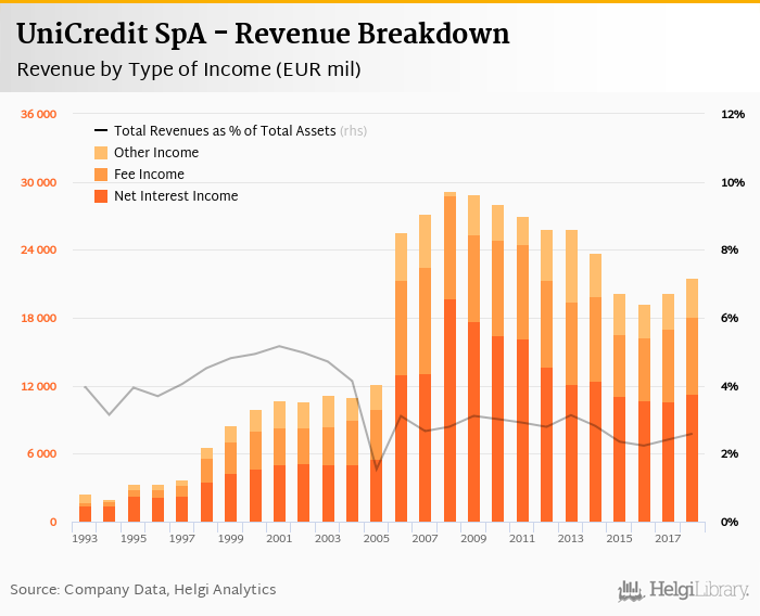 UniCredit SpA generated total banking revenues of EUR 21,521 mil in 2018, up 6.4902097590665% compared to the previous year.