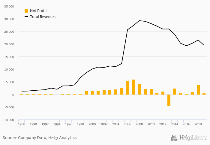 On the other hand, bank’s revenues amounted to an all time high of EUR 29,198 mil in 2008 and an all time low of EUR 1,223 mil in 1988. The average revenues in the last five years reached EUR 20,124 mil.