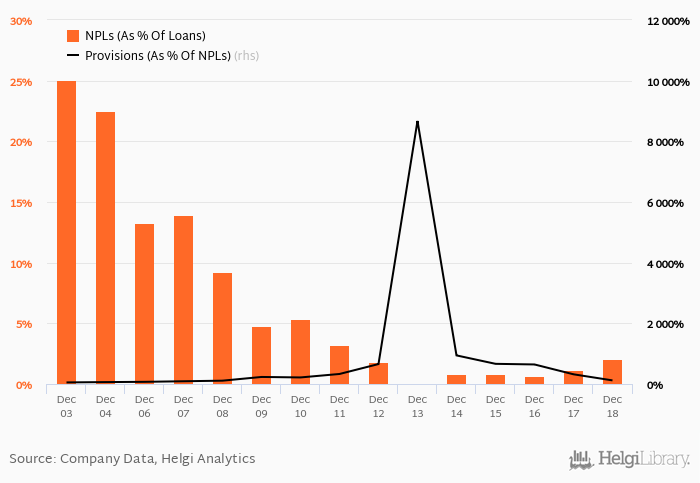 The bank created loan loss provisions worth of 0.785% of average loans in 2018-12-31. That's compared to 0.536% of loans the bank put aside to its cost on average in the last five years.