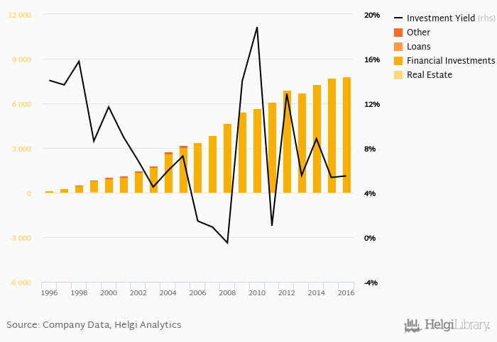 Financial investments formed 99.6% of total investment portfolio at the end of 2016. Loans represented 0.000% and real estate assets 0.511% of total investments at the year-end.