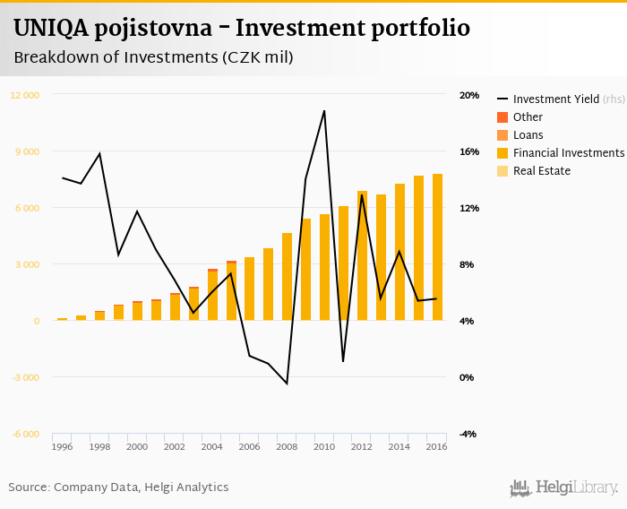 UNIQA pojistovna's total investments reached CZK 7,818 mil at the end of 2016, up 1.07% when compared to the previous year.