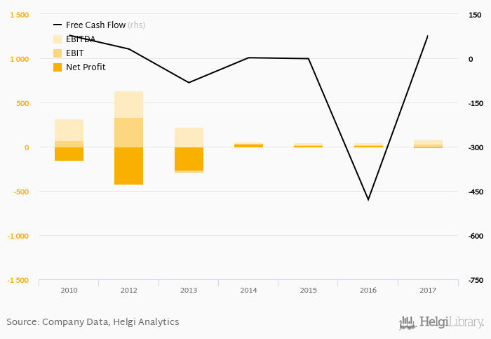 The company generated cash, defined by a sum of net profit and depreciation, of CZK 54.9 mil or 2.49% of sales. When investments are excluded, free cash flow reached CZK 78.2 mil, or 3.54% of sales in 2017.