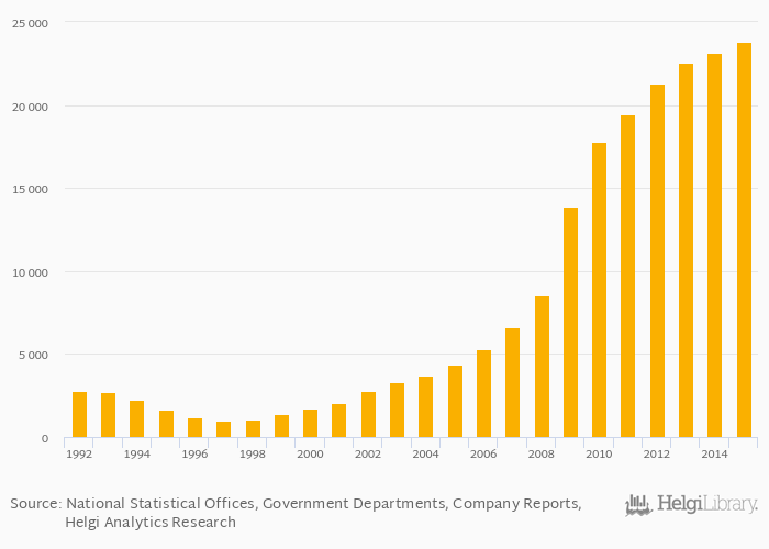 Historically, uranium production in Kazakhstan reached an all time high of 23,800 tonnes in 2015 and an all time low of 1,000 tonnes in 1997.