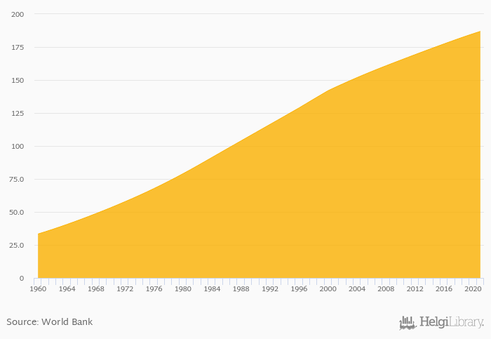 Urban population rose 0.957% to 187 mil in Brazil in 2021, according to the National Statistical Office.