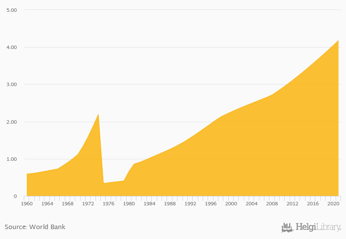 | Laos | mil | 2.50 | 2.58 | 2.67 | 2.75 | 2.84 | ||||||||||||||||