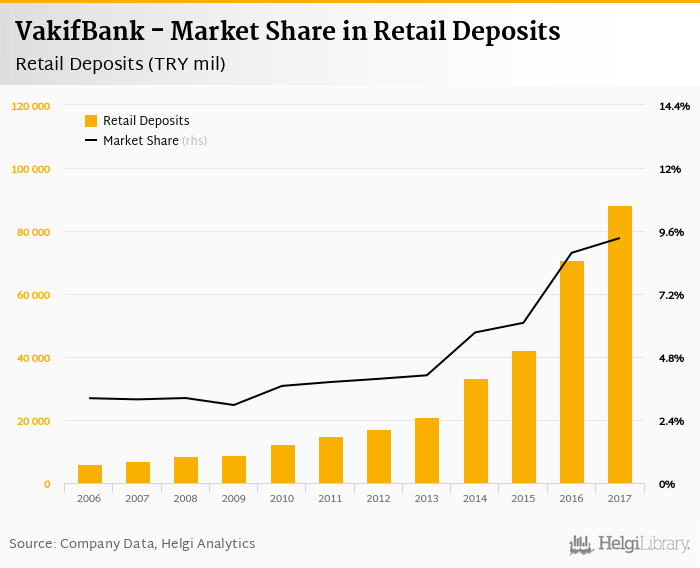 VakifBank's retail deposits reached TRY 88,188 mil in 2017, up 24.7% compared to the previous year.