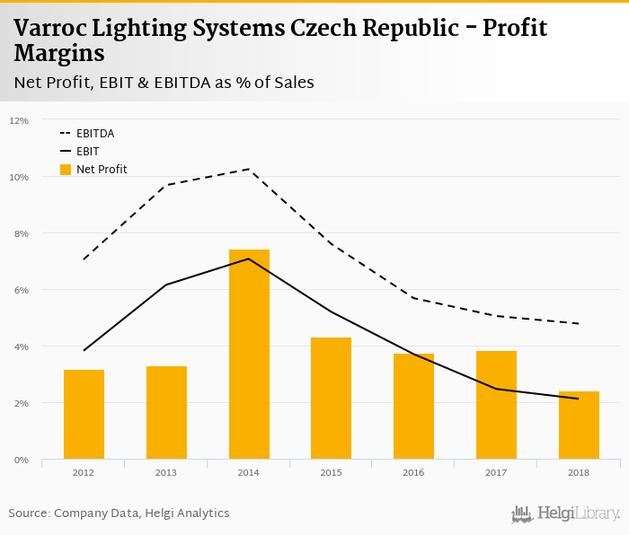 Varroc Lighting Systems Czech Republic made a net profit of CZK 369 mil with revenues of CZK 15,282 mil in 2018, down by 25.4% and up by 18.7%, respectively, compared to the previous year.