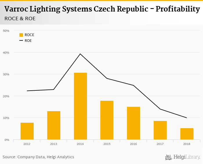 Varroc Lighting Systems Czech Republic made a net profit of CZK 369 mil in 2018, down 25.4% compared to the previous year. Historically, between 2012 and 2018, the company's net profit reached a high of CZK 772 mil in 2016 and a low of CZK 193 mil in 2012.