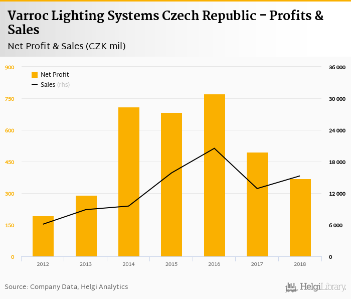 Varroc Lighting Systems Czech Republic made a net profit of CZK 369 mil in 2018, down 25.4% compared to the previous year. Total sales reached CZK 15,282 mil, which is up 18.7% when compared to the previous year.