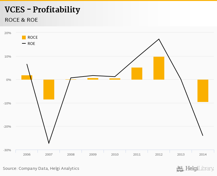 As far as VCES's peers are concerned, Skanska Czech Republic generated ROE of 2.22% and ROCE of 2.70% in 2014. Metrostav's profitability reached 6.36% and 7.16%, respectively. Eurovia Czech Republic operated with 8.74% and 7.72% returns in 2014.