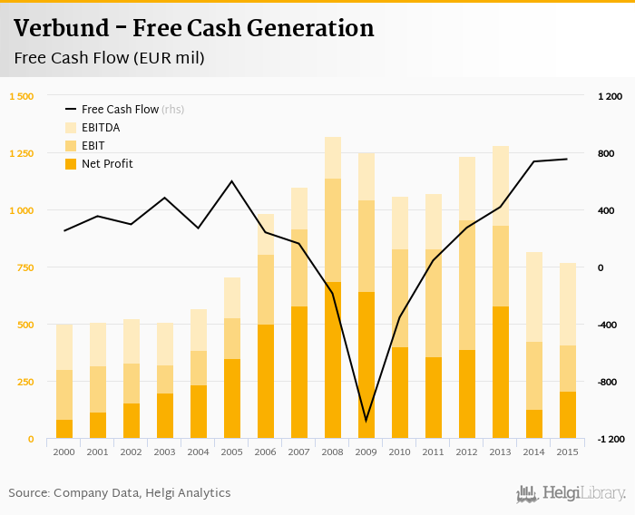 Verbund made a net profit of EUR 208 mil with revenues of EUR 2,970 mil in 2015, up by 64.7% and up by 3.43%, respectively, compared to the previous year. This translates into a net margin of 7.00%.