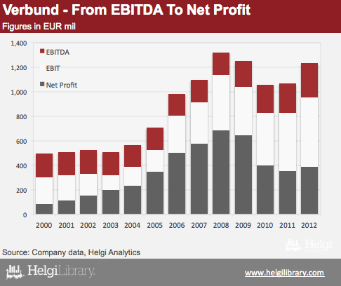 Despite increasing its installed capacity by more than 28% since 2006, Verbund's sales have increased by only about 10% while net profit is down more than 22% when compared to the 2012 numbers. As a result, Company's ROE has dropped from more the 20's in 2005-2009 to the single digits in he last two years.