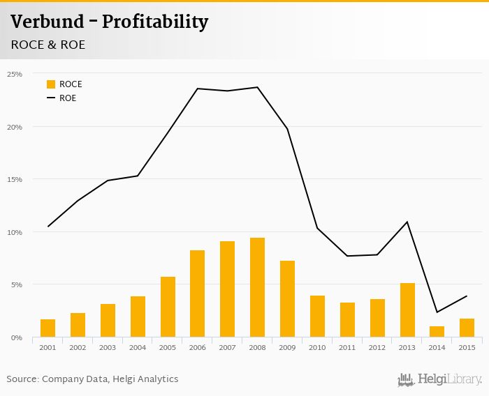 As far as Verbund's peers are concerned, EVN generated ROE of 5.67% and ROCE of 2.56% in 2015. CEZ's profitability reached 7.71% and 4.01%, respectively. PGE operated with -7.11% and -5.58% returns in 2015.
