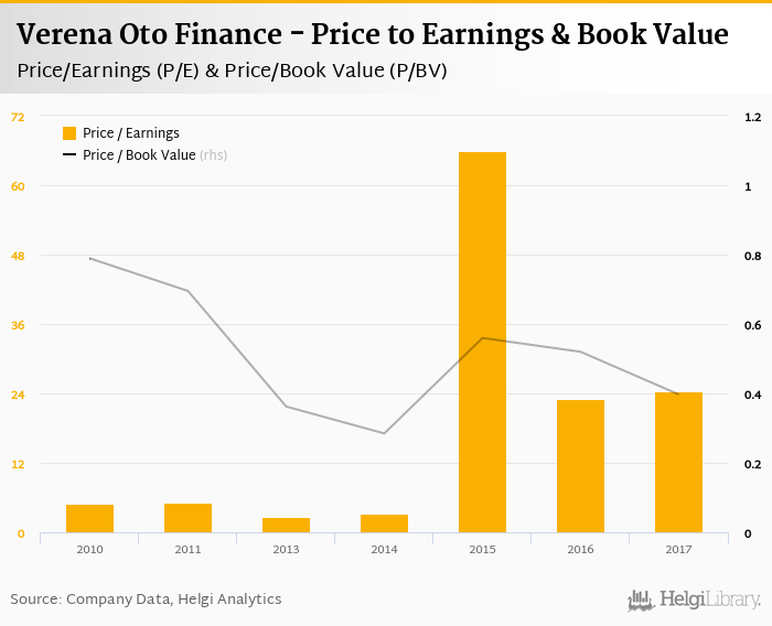 Verena Oto Finance stock traded at IDR 93.0 per share at the end 2017 implying a market capitalization of USD 17.7 mil.