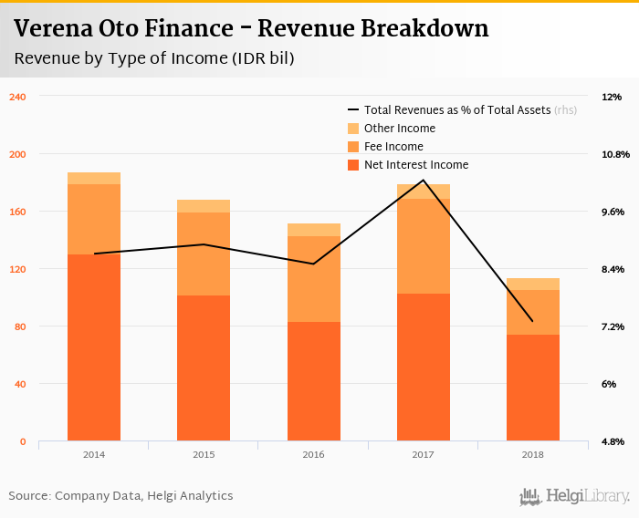 Verena Oto Finance generated total banking revenues of IDR 114 bil in 2018, down 36.4% compared to the previous year.