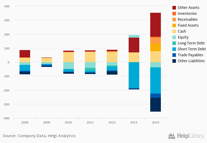 Net debt against equity is up 4.80 pp from five years ago (-1.78). The ratio against EBITDA increased from -13.7x seen in 2009 to 0.943x.