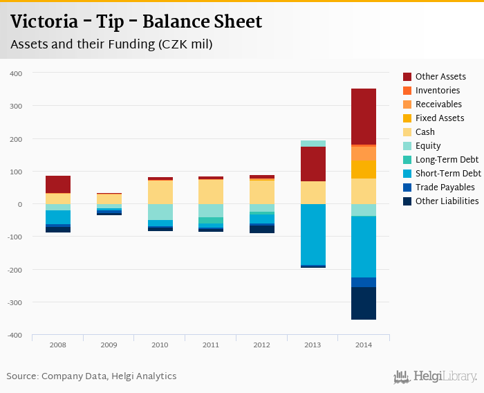 Victoria - Tip's total assets reached CZK 353 mil at the end of 2014, up 101% compared to the previous year.