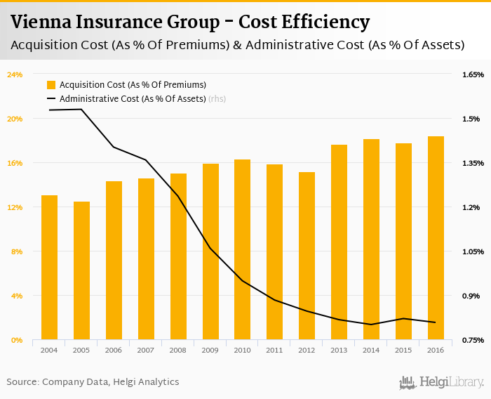 Vienna Insurance Group's cost to assets ratio reached 0.807% in 2016, down from 0.820% when compared to the previous year.