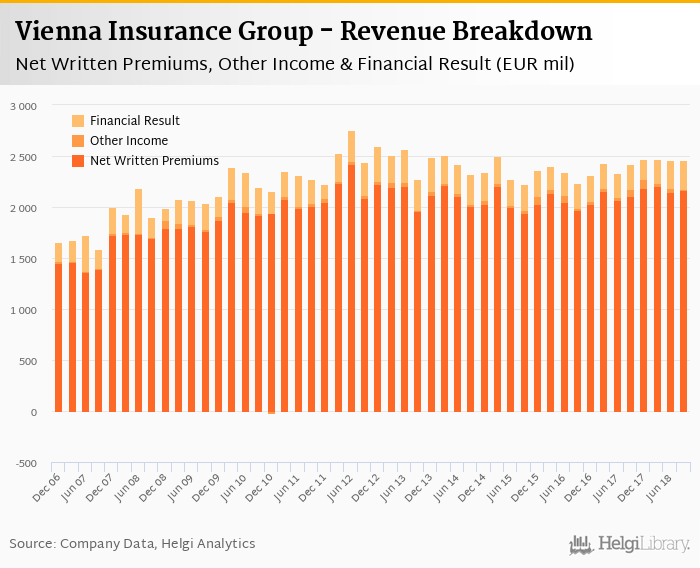 Vienna Insurance Group generated total net revenues of EUR 2,465 mil in 2018-09-30, up 0.282% when compared to the previous year.