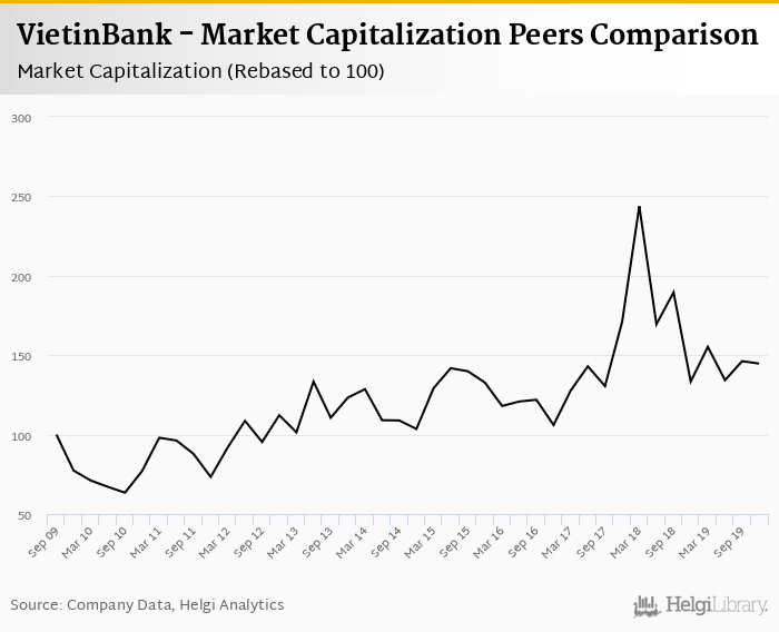 VietinBank stock traded at VND 20,900 per share at the end of fourth quarter of 2019 implying a market capitalization of USD 3,358 mil.