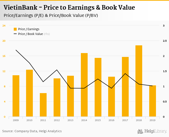 VietinBank stock traded at VND 20,900 per share at the end 2019 implying a market capitalization of USD 3,358 mil.