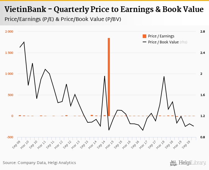 VietinBank stock traded at VND 20,900 per share at the end fourth quarter of 2019 implying a market capitalization of USD 3,358 mil.