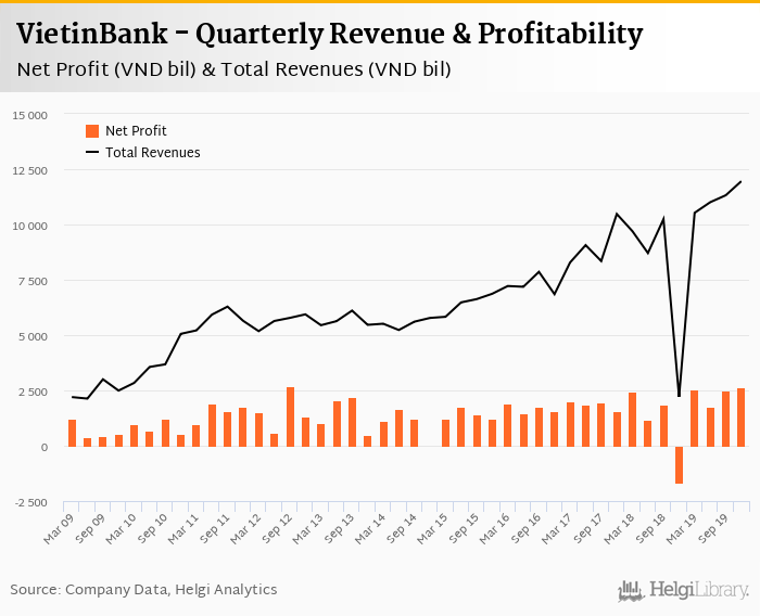 VietinBank made a net profit of VND 2,655 bil under revenues of VND 11,958 bil in the fourth quarter of 2019, up 262% and 441% respectively when compared to the same period last year.
