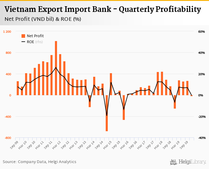 Vietnam Export Import Bank made a net profit of VND -16.3 bil in the fourth quarter of 2019, up 93.5% when compared to the same period of last year. This implies a return on equity of -0.413%.