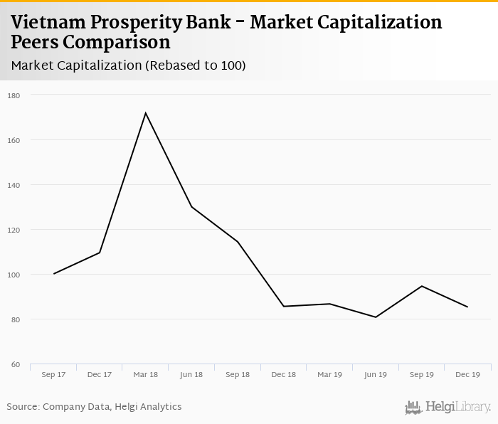 Vietnam Prosperity Bank stock traded at VND 20,000 per share at the end of fourth quarter of 2019 implying a market capitalization of USD 2,104 mil.