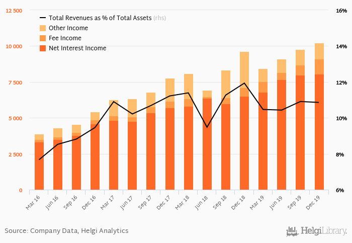 Net interest income represented 78.8% of total revenues, fee income contributed 10.0% and other non-interest income added further 11.2% to the overall revenue generation in 4Q2019.