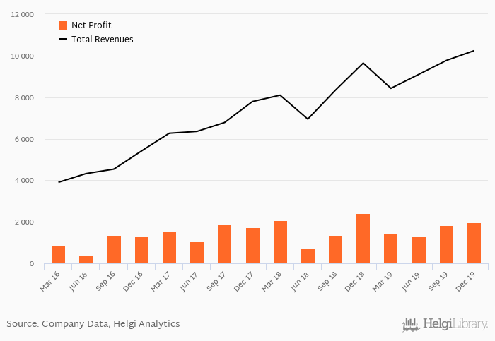 On the other hand, bank’s revenues amounted to an all time high of VND 10,239 bil in 4Q2019 and an all time low of VND 3,901 bil in 1Q2016. The average revenues in the last six quarters reached VND 9,253 bil.