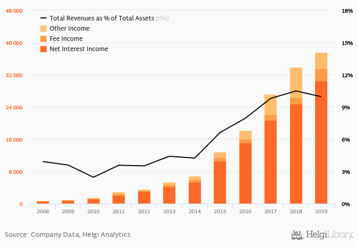 Bank's total revenues accounted for 9.95% total assets in 2019, down from 10.5% a year earlier.