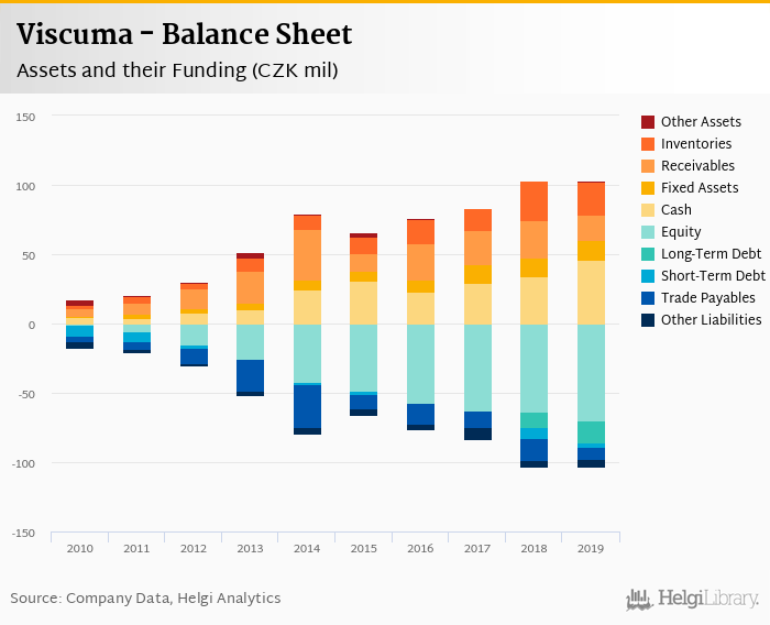 Viscuma's total assets reached CZK 103 mil at the end of 2019, down 0.082% compared to the previous year.
