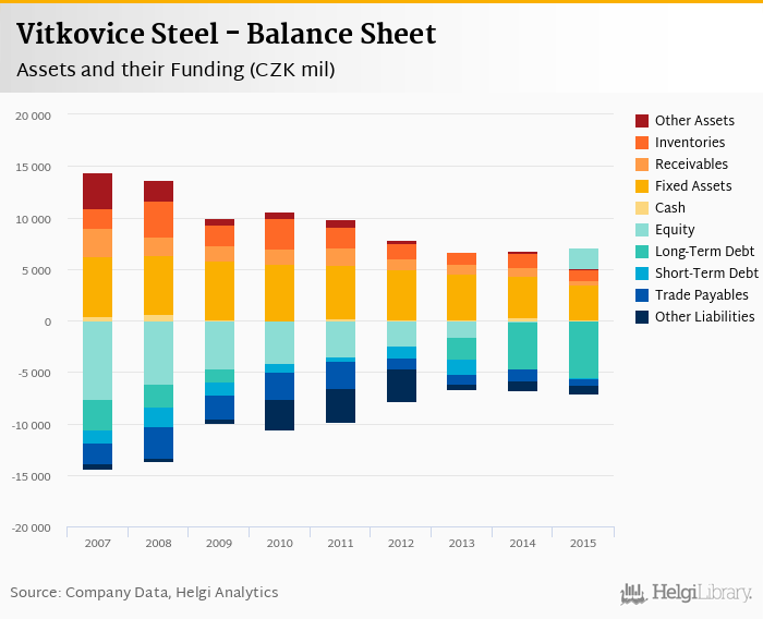 Vitkovice Steel's total assets reached CZK 5,119 mil at the end of 2015, down 24.1% compared to the previous year.