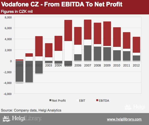 The mobile telephony has been a great business in the last decade. Since 2000 until 2008, Vodafone's total sales have increased 23-fold to around USD 1 bil in the Czech Republic. Since 2008 however, market saturation and increased competition has been pushing revenues and profits down.
