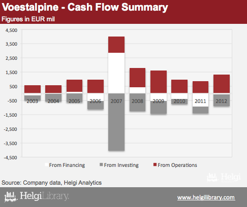 Voestalpine has overcame the financial crisis relatively well. Sales have reached the pre-crisis level of EUR 11.5 bil already in 2012, up 35% from its low in 2009. The operating profit reached EUR 854 mil in 2012 and was only 26% below the record level seen in the exceptional year 2007