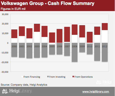 Volkswagen is one of the most successful car makers in the world. From 5.2 mil passenger cars produced in 2000, the Company sold more than 9.3 mil cars in 2012. Over the last decade, Volkswagen's sales and operating profit have more than doubled while Company's ROE exceeded 13% on average since 2000. Impressive...