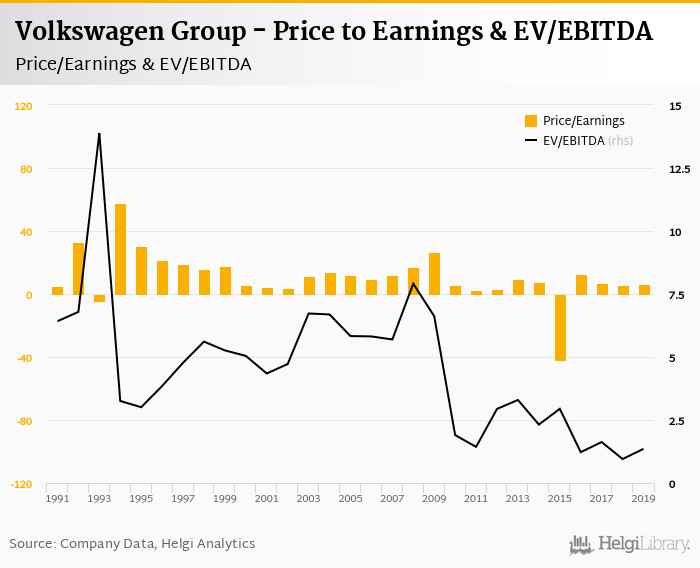 Volkswagen Group stock traded at EUR 173 per share at the end 2019 translating into a market capitalization of USD 97,523 mil.