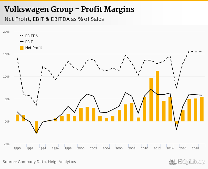 Volkswagen Group made a net profit of EUR 13,886 mil with revenues of EUR 252,633 mil in 2019, up by 14.4% and up by 7.12%, respectively, compared to the previous year.