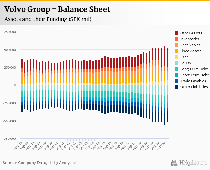 Volvo Group's total assets reached SEK 521,483 mil at the end of 2Q2020, up 1.07% compared to the previous year.