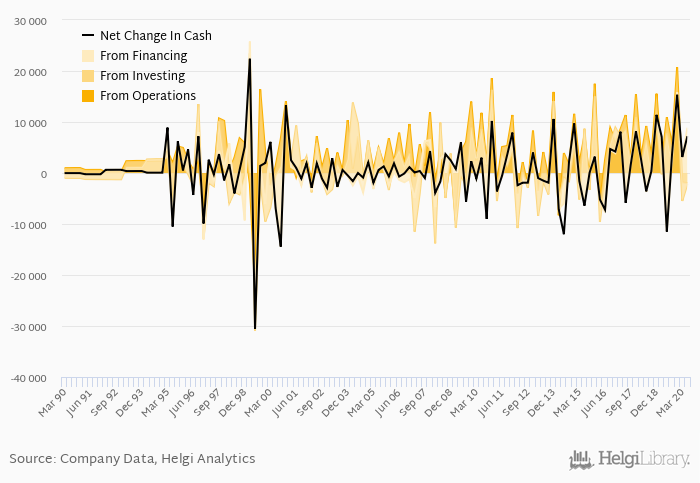 Cash from financing amounted to SEK 11,026 mil, so the company generated SEK 7,228 mil net cash in 2Q2020.