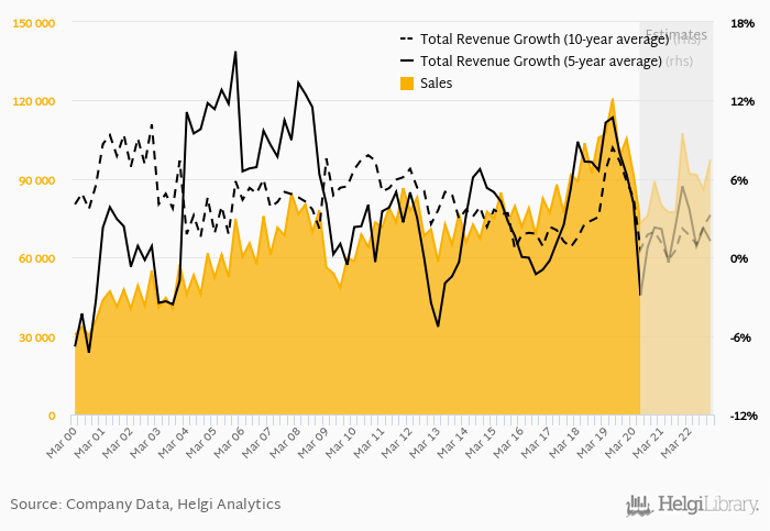 As a longer term comparison, sales have grown by an average of -2.89% a year in the last 5 years and 0.631% in the last 10 years.