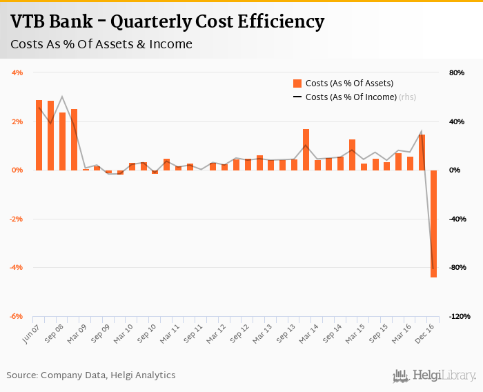 VTB Bank's cost to income ratio reached -81.5% in the fourth quarter of 2016, down from when compared to the previous quarter.