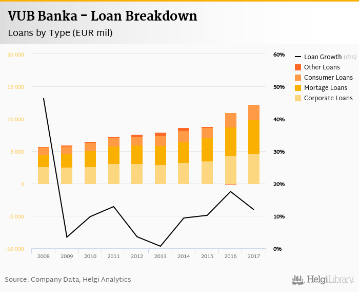 At the end of 2017, VUB Banka's loans accounted for 121% of total deposits and 80.2% of total assets.