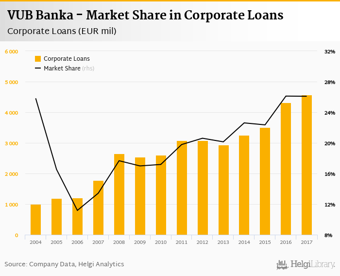 VUB Banka's corporate loans reached EUR 4,570 mil in 2017, up 6.00% compared to the previous year.