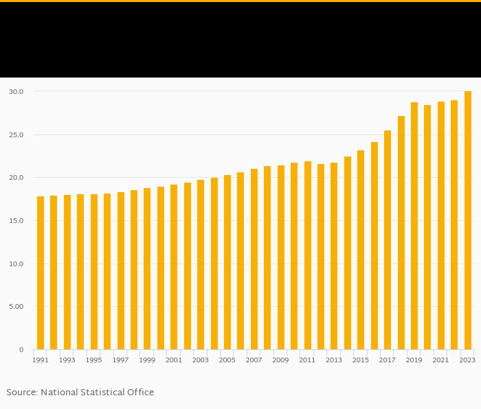| Eritrea | % | 30.4% | 30.7% | 30.9% | 30.6% | 31.1% | ||||||||||||||||