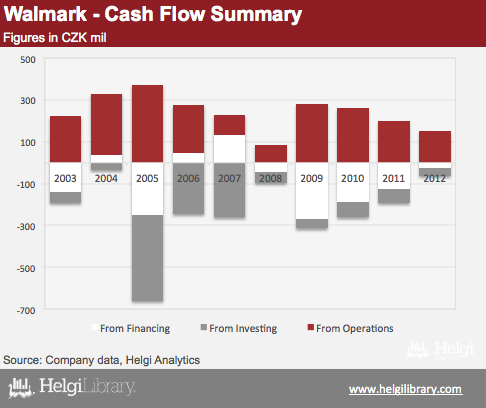 As the profit margin remained rather stable during the last decade, however volatile, the Company's profits have declined from CZK 142 mil on average in 2003-2007 to only CZK 57 mil in 2008-2012