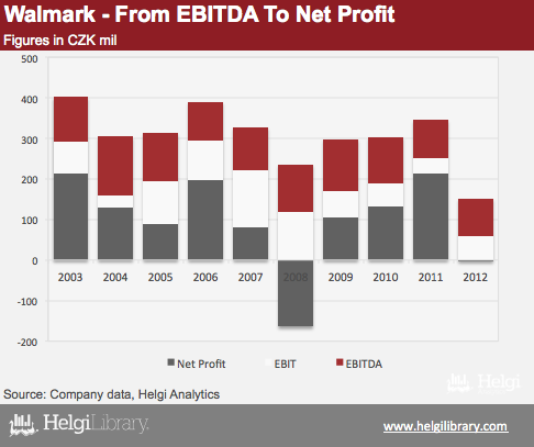 As the profit margin remained rather stable during the last decade, however volatile, the Company's profits have declined from CZK 142 mil on average in 2003-2007 to only CZK 57 mil in 2008-2012