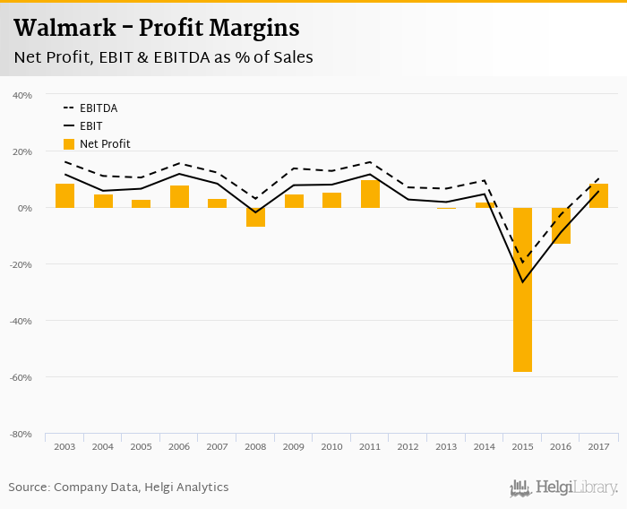 This translates into a net margin of 8.59%. Historically, between 2003 and 2017, the firm’s net margin reached a high of 9.83% in 2011 and a low of -58.0% in 2015. The average net margin in the last five years amounted to -12.1%.